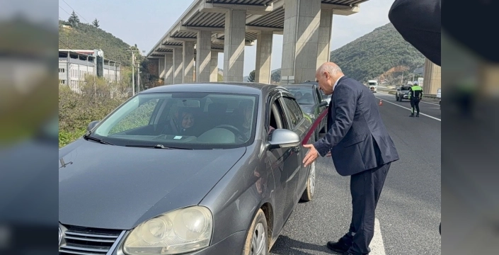 Bursa'nın Gemlik ilçesinde Kaymakam Osman Aslan Canbaba, Ramazan Bayramı öncesinde gerçekleştirilen trafik denetimlerine katıldı.
