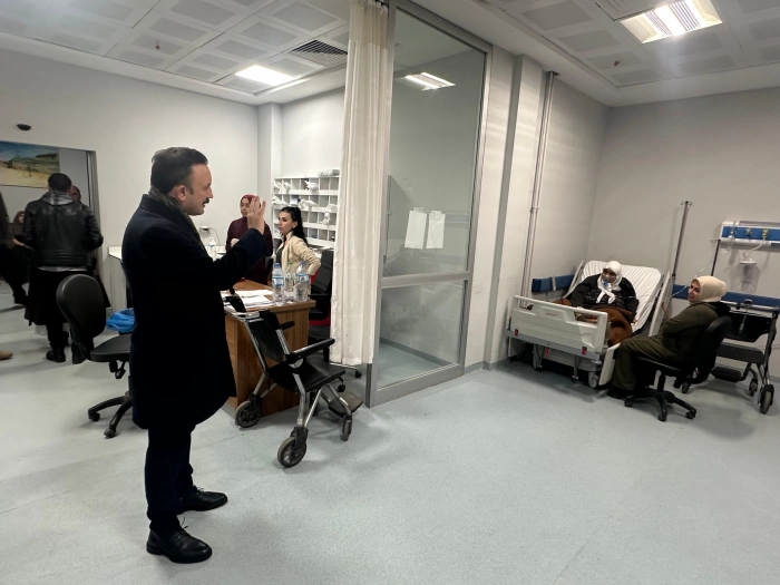 Daha sonra Malazgirt Devlet Hastanesi'ne geçen Kaymakam Bayram, burada tedavi gören hastalarla tek tek ilgilendi. Hastaların ve sağlık çalışanlarının yeni yılını kutlayan Bayram, geçmiş olsun dileklerinde bulunarak moral verdi.