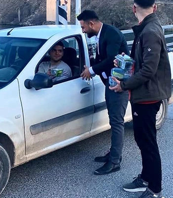 ALPARSLAN DİYARI- AK Parti Keban İlçe Gençlik Kolları Başkanı Yunus Emre Kaya, üyelerle birlikte Fırat Nehri Köprüsünde iftar saatinde trafikte olan yolculara ve sürücülere kumanya ve su ikram etti.