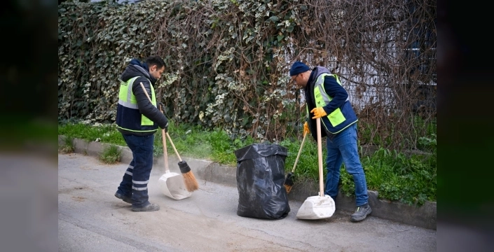 Ekipler, ilçe genelinde yürüttüğü çalışmalar kapsamında cadde ve sokakları tazyikli su ile yıkayarak toz ve kirden arındırıyor. Ayrıca, çöp konteynerlerinin bulunduğu alanlar düzenli olarak temizlenip dezenfekte edilerek hem kötü kokuların önüne geçiliyor hem de çevre kirliliği engelleniyor.