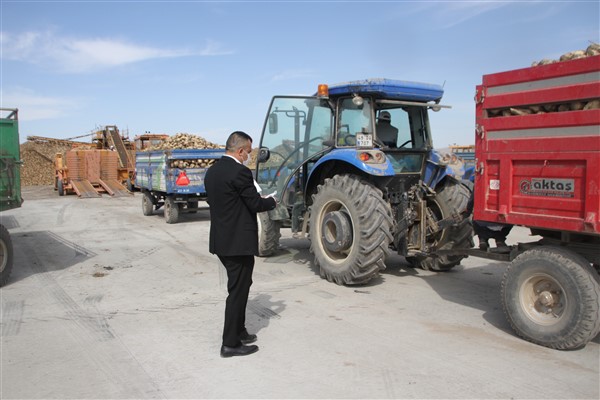 Pancarlarını kantara getiren çiftçilere sosyal mesafenin korunması noktasında uyarıda bulunan Başkan Tahsin Kılıç, "Genel Başkanımız Sayın Şemsi Bayraktar’ın talimatları doğrultusunda, pandemi dönemi boyunca hep sahada kaldık. Bugünde pancar üreticilerimizi ziyaret ettik. Sahadaki çalışmaları inceledik. Tarladan kantara teslim edilene kadar tüm süreci yakından takip ediyoruz. Çiftçilerimiz süreç boyunca karşılanacağı sorunları gidermeye çalışıyoruz. Pandemi dönemi olması dolayısı iler bizde çiftçilerimizi yakından takip ediyoruz. Çiftçilerimize yeniden maske dağıttık. Oda olarak yarın inşallah römorkların arkasına takılması için reflektör dağıtacağız. Tek temennimiz çiftçilerimizin cezai işlem görmemesidir. Şuanda ilçemizde pandemiye rağmen günde 3-4 bin ton şeker pancarı teslimi yapan çiftçilerimiz var. Bizler oda olarak her hafta maske dağıtımı yapmaya devam edeceğiz. Pandemi dönemi boyunca bizden ve çiftçilerimizden desteklerini esirgemeyen Sayın Kaymakamımız Emre Yalçın’a ilçedeki tüm çiftçiler adına teşekkür ediyorum. “dedi.