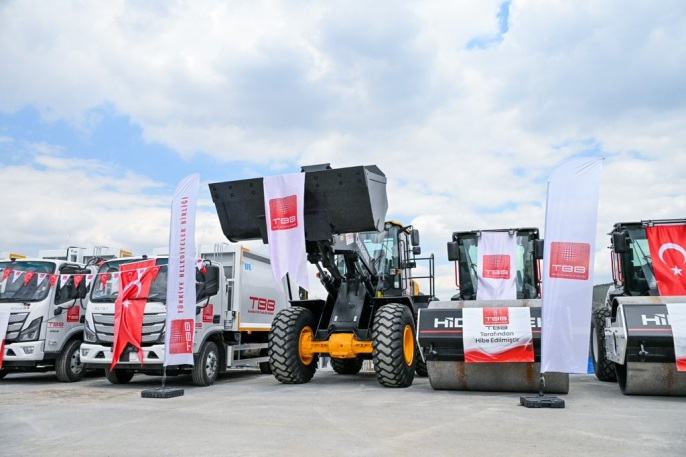 TBB Başkan Vekili ve Mersin Büyükşehir Belediye Başkanı Vahap Seçer’in katılımıyla gerçekleştirilen törende, Kırköy Belediye Başkanı Rahmetullah Yaktı hibe edilen damperli kamyonun sembolik anahtarını teslim aldı.