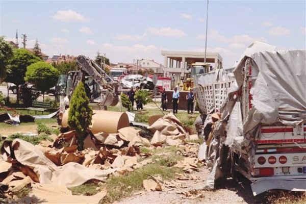 Kaza, Çifteler- Konya kara yolu 5'inci kilometresindeki ışıklı kavşakta meydana geldi. Kırmızı ışıkta geçen Abdülkadir Büyükakdağ'ın kullandığı 42 AJN 250 plakalı rulo kağıt yüklü TIR, 60 SC 761 plakalı otomobile çarptı. Savrulan TIR, çarptığı otomobilin üzerine devrildi. Otomobildeki Ali Osman Çalışkan hayatını kaybetti Erol Arda ağır yaralandı.