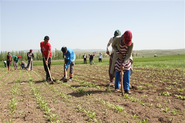 Malazgirt’te günün ilk ışıklarıyla tarlanın yolunu tutan üreticiler; Ramazan Bayramlarını tarlada çapa yaparak geçiriyorlar.