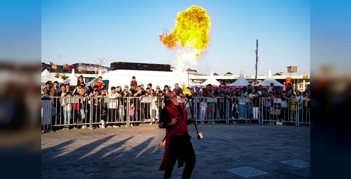 Kocaeli Büyükşehir Belediyesi tarafından organize edilen şenlikte, jonglörler, palyaçolar, tahta bacaklar ve maskotlar alanda renkli bir geçit yaptı. Çocuklar, 'Ateş Gösterisi'ni izlemek için kendilerine ayrılan bölümde yerlerini alırken, aileleri de onlara eşlik etti. Gösteri, ateş toplarının havada döndüğü etkileyici performanslarla başladı.
