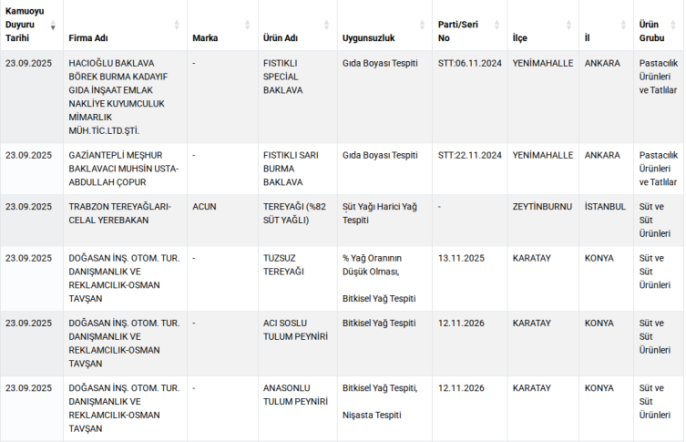 Tarım ve Orman Bakanlığı, vatandaşların güvenilir gıdaya erişimini sağlamak amacıyla gıda denetimlerini sürdürüyor. Uygunsuzluk tespit edilen her ürün Bakanlığın 'guvenilirgida.tarimorman.gov.tr' internet sitesinden paylaşılıyor.