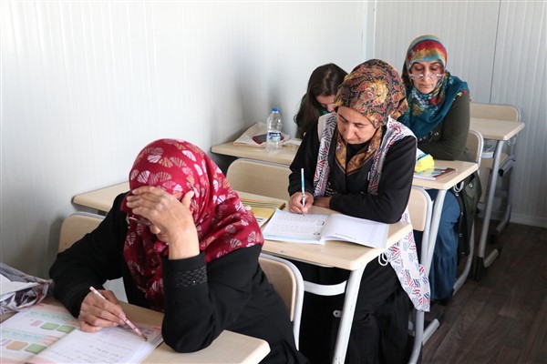 Kahramanmaraş merkezli 6 Şubat'taki depremlerde yıkım ve hasarın çok olduğu Malatya'da, Teknokent Geçici Konaklama Merkezi'ne yerleştirilen kadınlar, burada Hayat Boyu Öğrenme Genel Müdürlüğü Destek ve Koordinasyon Merkezince açılan okuma yazma ve Kur'an-ı Kerim kursuna katılıyor.