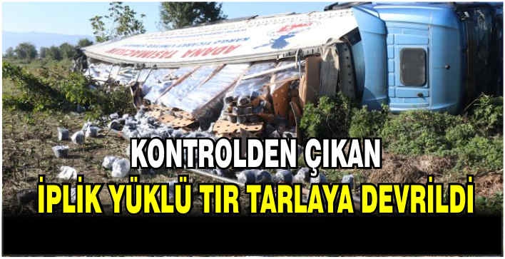 Tırda yüklü ipler tarlaya savruldu. Kazaya ilişkin inceleme başlatıldı.