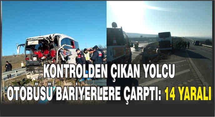 ALPARSLAN DİYARI-Bursa-Eskişehir kara yolunun Poyra köyü mevkiinde seyreden S.C. idaresindeki yolcu otobüsü, sürücüsünün direksiyon hakimiyetini kaybetmesiyle yol kenarındaki bariyerlere çarptı.