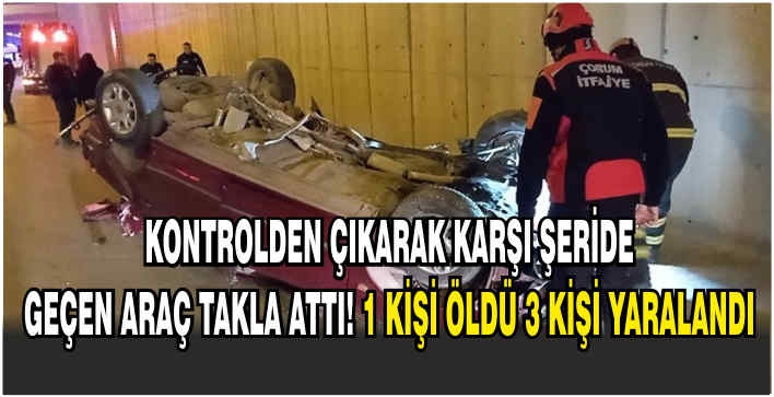 Çorum'da feci kaza! Kontrolden çıkarak karşı şeride geçen araç takla attı, 1 kişi öldü 3 kişi yaralandı