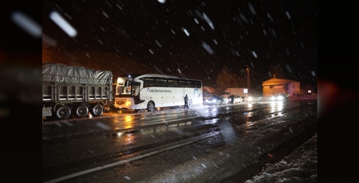 Bölgedeki kar yağışı akşam saatlerinde başlamıştı ve etkisini sürdürmeye devam ediyor. Yoğun tipinin görüş mesafesini düşürmesi nedeniyle sürücüler ilerlemekte zorlanıyor, bazı araçlar ise yolda kalıyor.