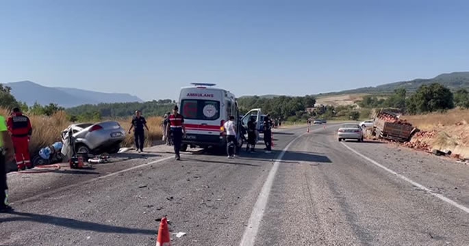 ALPARSLAN DİYARI- Muğla'nın Seydikemer ilçesinde tuğla yüklü tırla çarpışan otomobildeki 2 kişi hayatını kaybetti, 1 kişi yaralandı.