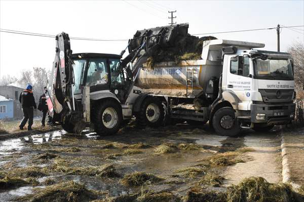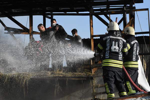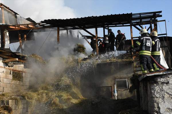 Yakutiye Belediyesi ekipleri ise kullanılamaz hale gelen ahırın çatısında yanan yaklaşık 2 bin balya otu kepçe ve kamyonlarla temizledi.