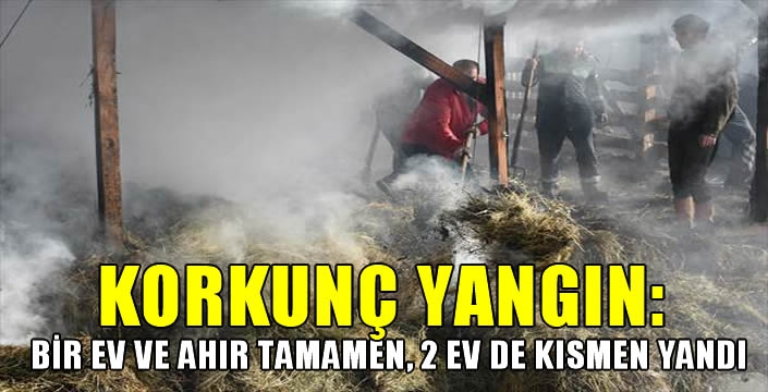Yangında Bilici'ye ait 1 ev ile Veli Abravci'nin 1 ahırı tamamen yandı, 2 evde ise hasar oluştu.