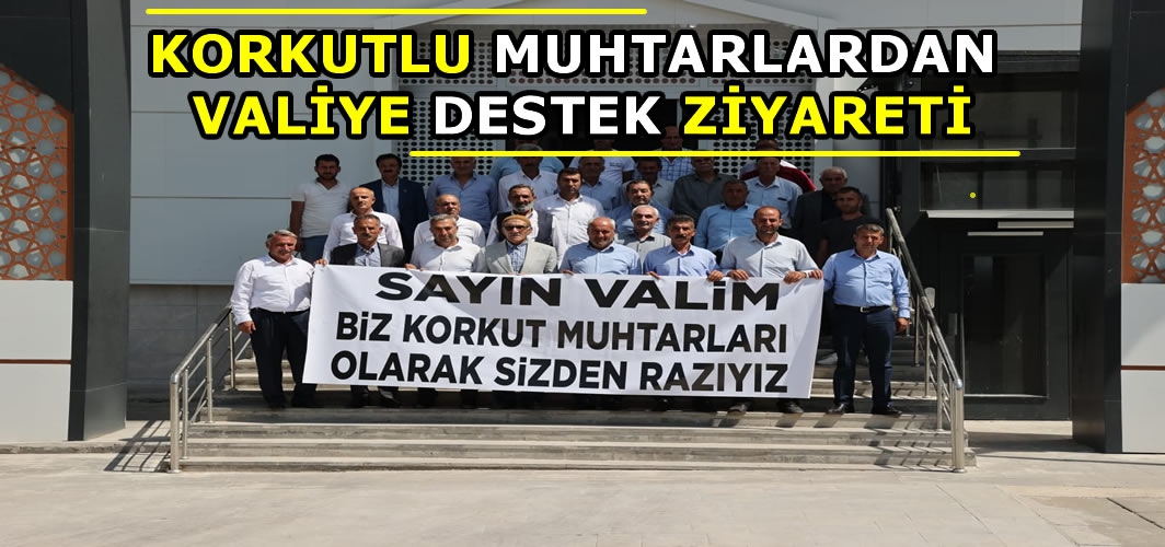 Muhtarlar, valilik önünde “Sayın Valim Biz Korkut Muhtarları Olarak Sizden Razıyız” pankartı açtı.