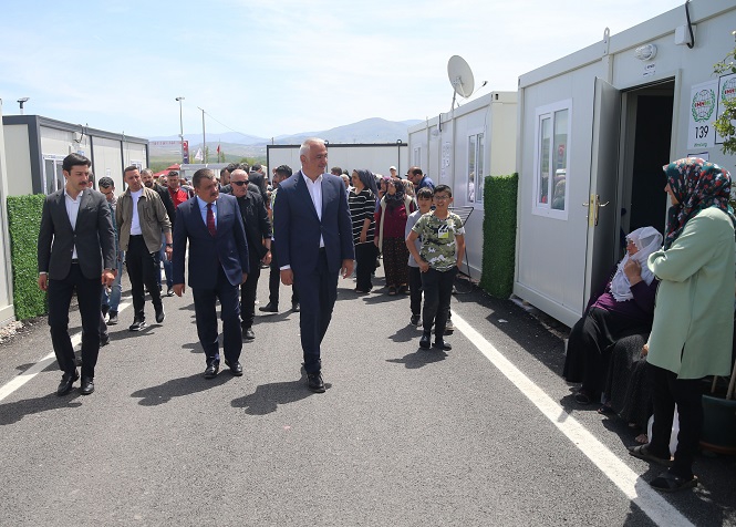 Ersoy, afetzedelere verilen hizmetleri ve konteynerleri inceledi.