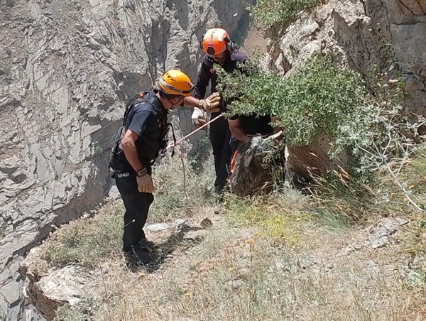 Bunun üzerine bölgeye giden AFAD ekipleri, yürüttükleri çalışma sonucu keçiyi mahsur kaldığı 200 metre yükseklikteki kayalık alandan kurtardı.