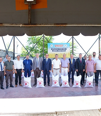 Konuşmaların ardından hazırlanan arpa torbaları çiftçilere teslim edildi.