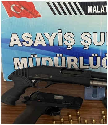 Şüphelilerin kullandığı öne sürülen av tüfeği ve 2 tabanca da ele geçirildi.