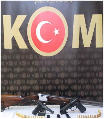 Zanlıların adreslerinde yapılan aramada, 2 tabanca, 3 tabanca şarjörü, 52 tabanca fişeği ve 1 tüfek ele geçirildi.