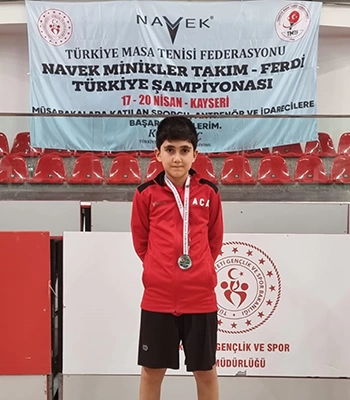 ALPARSLAN DİYARI- Kayseri'de 17-20 Nisan'da Türkiye'deki en iyi 128 oyuncunun katılabildiği 11 yaş altı Ferdi Minikler Masa Tenisi Türkiye Şampiyonası'na katılan Kantik, Türkiye ikincisi oldu.