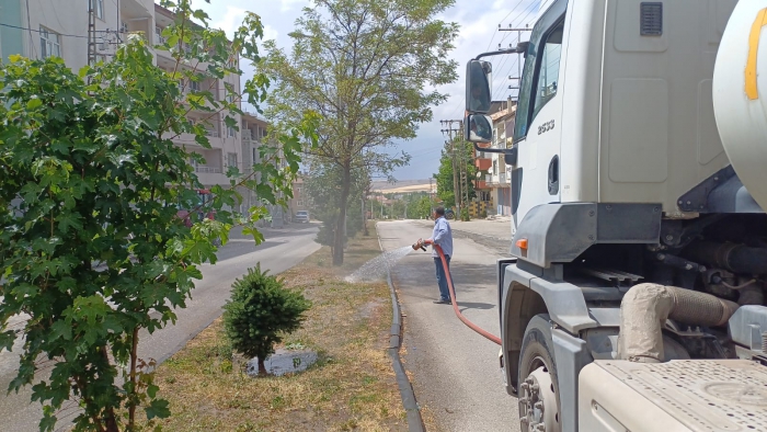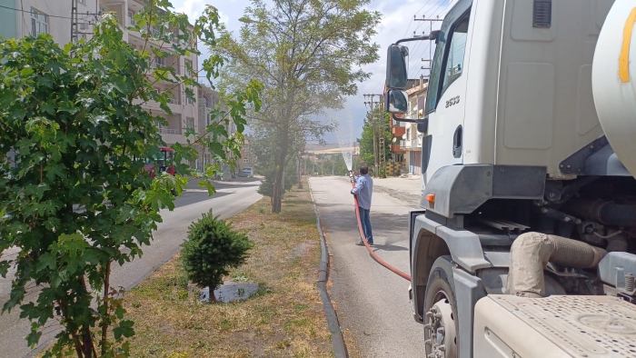 ALPARSLAN DİYARI-Belediye bünyesinde faaliyet gösteren Park ve Bahçeler Müdürlüğü ekipleri, yol kenarındaki ağaçların kurumasını önlemek amacıyla her gün düzenli sulama yapıyor.