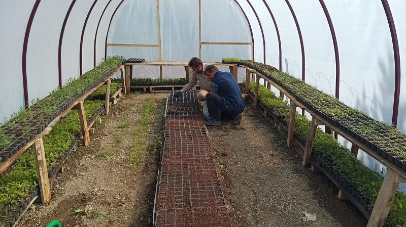 Malazgirt belediye garajında kurulan kapalı serada yetiştirilen taflan, ateş dikeni, biberiye, alev çalısı, gibi bitkiler, uygun iklim koşullarında park, bahçe ve meydanlara dikilecek