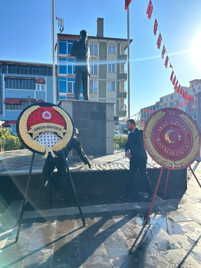ALPARSLAN DİYARI-Güvenir, Atatürk’ün sevdiği kasımpatı ve güllerden hazırlanan çiçekleri, protokol üyeleriyle birlikte büstünün önüne bıraktı. Ayrıca etkinliğe katılan vatandaşlara da çiçekler dağıtıldı.