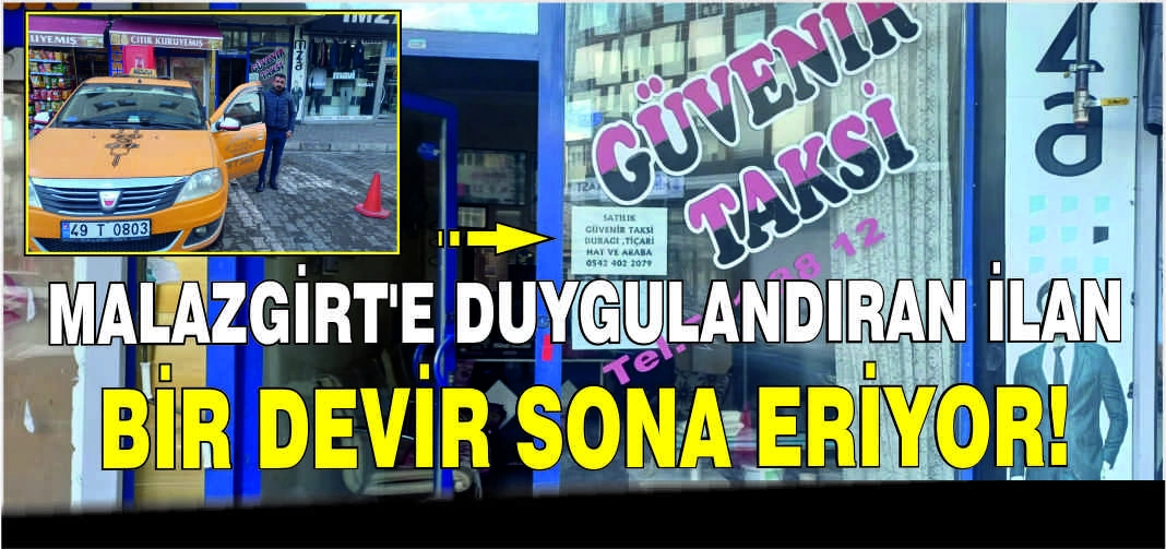 ALPARSLAN DİYARI- İlçenin taksi taşımacılığına yön veren Güvenir Taksi’nin camına asılan satış ilanı, Malazgirt halkı için nostaljik bir vedayı da beraberinde getirdi. Babasından kalan bu mesleği uzun yıllardır sürdüren Bülent Güvenir, duygularını şu sözlerle dile getirdi: