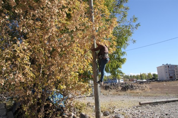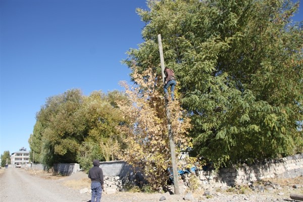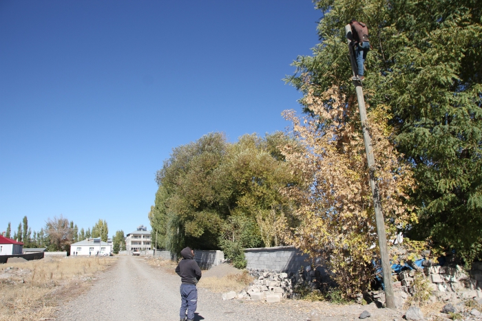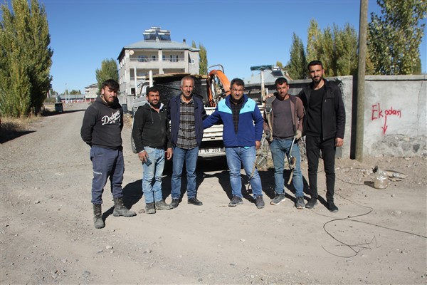 Muhtar Hasan Başaran, fiber optik altyapı uygulama çalışmasına gönüllü olarak yardım ediyor.