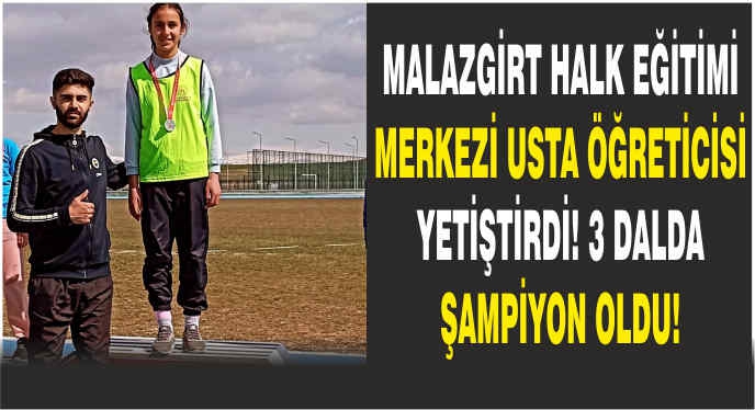 ALPARSLAN DİYARI-Halk Eğitimi Merkezi usta öğreticilerinden Alparslan Karataş, yeteneğini keşfettiği ve kendi elleriyle yetiştiği öğrencisi Tuğçe Kardan, Muş’ta 11-12 Mart tarihlerinde yapılan puanlı atletizm yarışmalarında 3 farklı branşta Muş il birinciliğini kazandı.