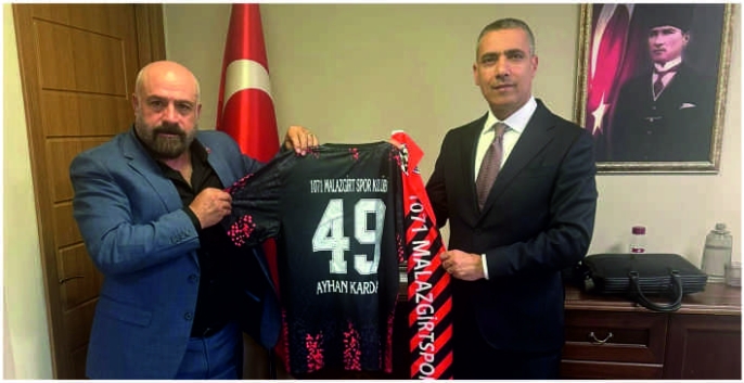 Heyet, görüşme sırasında Malazgirt 1071 Spor forması hediye ederek desteklerinden dolayı Ayhan Kardan’a teşekkür etti.