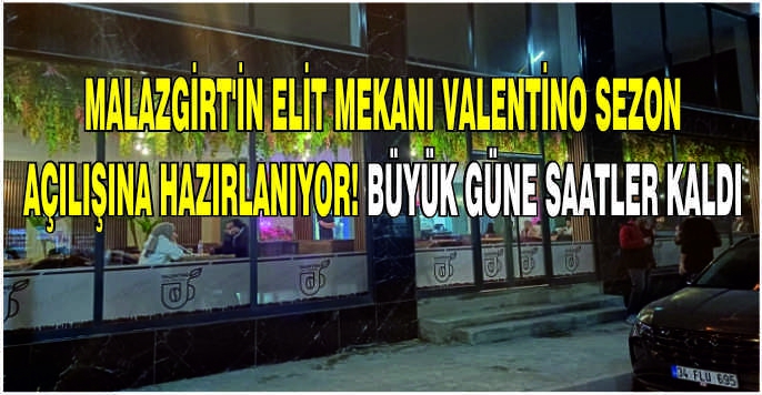 Malazgirt’in elit mekanı Valentino Cafe-Restaurant, sezon açılışıyla misafirlerine unutulmaz anlar yaşatmaya hazırlanıyor. Büyük güne saatler kala, tüm Malazgirt halkı bu özel etkinliğe davetli. Eğlenceli ve lezzet dolu bir akşam geçirmek isteyenler için Valentino’da buluşalım!