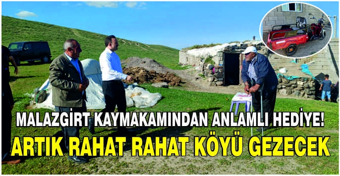 ALPARSLAN DİYARI-Bu anlamlı hediye Kaymakam Göksu Bayram tarafından, Kazım Akın'a köyün üst tarafındaki evine rahatça gidip gelmesi için verildi.