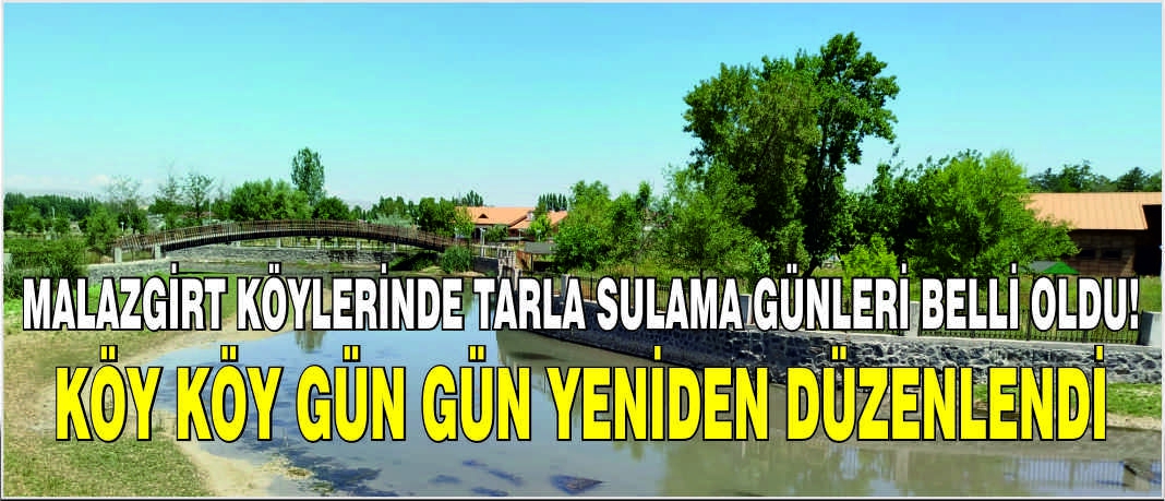 ALPARSLAN DİYARI-Bulanık Sulama Birliği Başkanlığı tarafından yapılan açıklamaya göre, sulama günleri ve hakları şu şekilde belirlendi:
