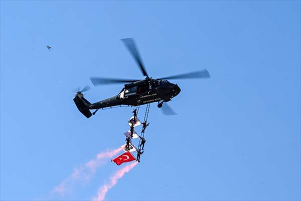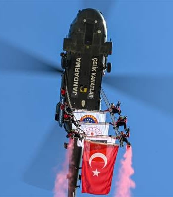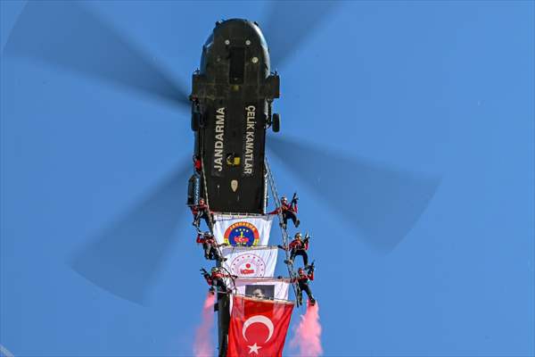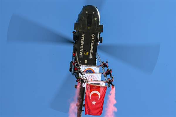 Jandarma Genel Komutanlığı Çelik Kanatlar Timi tarafından Ahlat ilçesindeki etkinlik alanında "Üzüm Salkımı" adlı helikopterli gösteri yaptı.