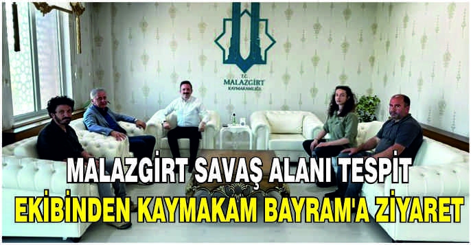 ALPARSLAN DİYARI- Kültür ve Turizm Bakanlığının izni ve desteğiyle Ahlat Müze Müdürlüğü başkanlığında Sıtkı Koçman Üniversitesi öğretim üyesi Prof. Dr. Adnan Çevik’in bilimsel danışmanlığında yürütülen “Malazgirt Savaş Alanı Tespiti, Tarihi ve Arkeolojik Yüzey Araştırması” projesi ekibi, Malazgirt Kaymakamı Göksu Bayram’ı ziyaret etti.