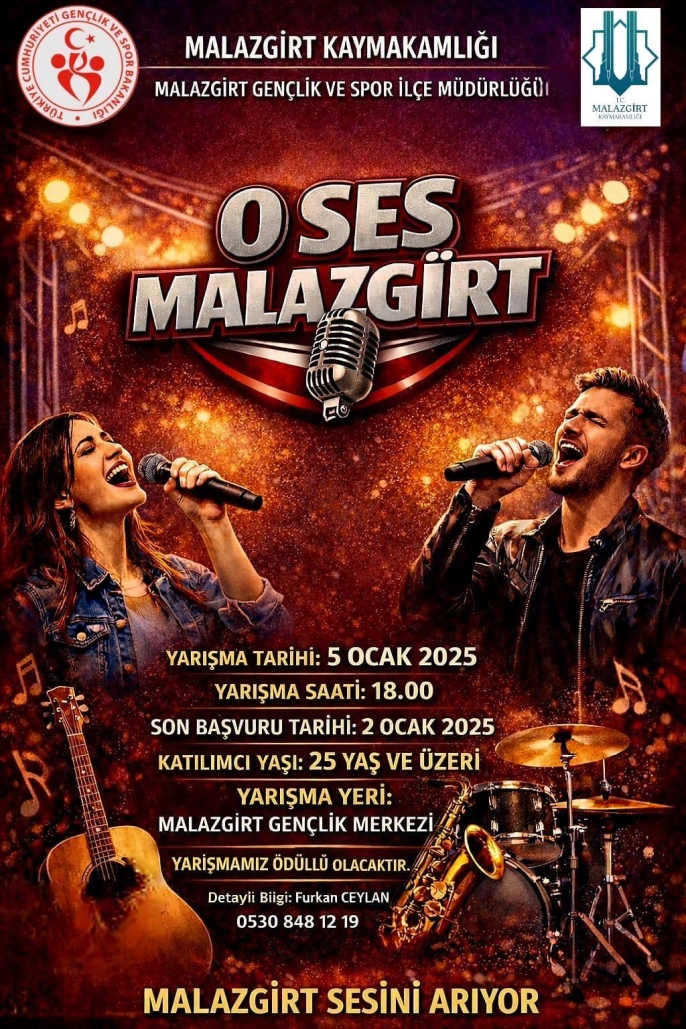 Yarışma, 5 Ocak 2025 Pazar günü saat 18.00’de, Malazgirt Gençlik Merkezinde gerçekleştirilecek. 25 yaş ve üzeri katılımcıların başvurabileceği organizasyonda, yetenekler jüri karşısında performanslarını sergileyecek.