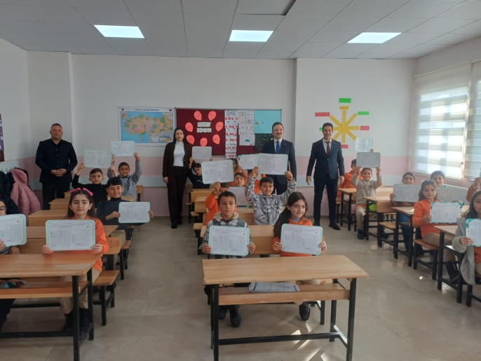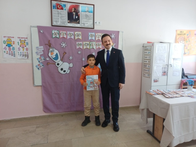 Kaymakam Bayram, öğrencilerin karnelerini vererek başarı dileklerinde bulundu ve tatilde bol bol kitap okumalarını tavsiye etti.