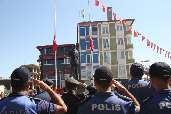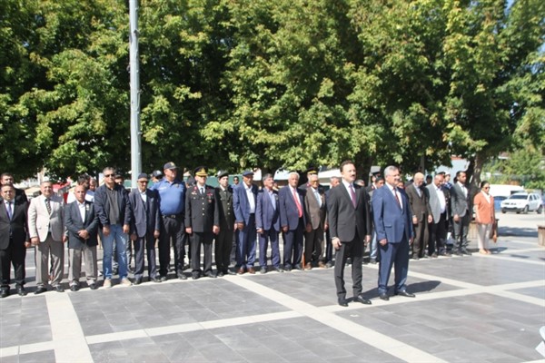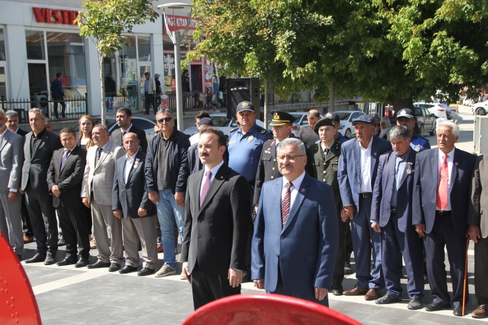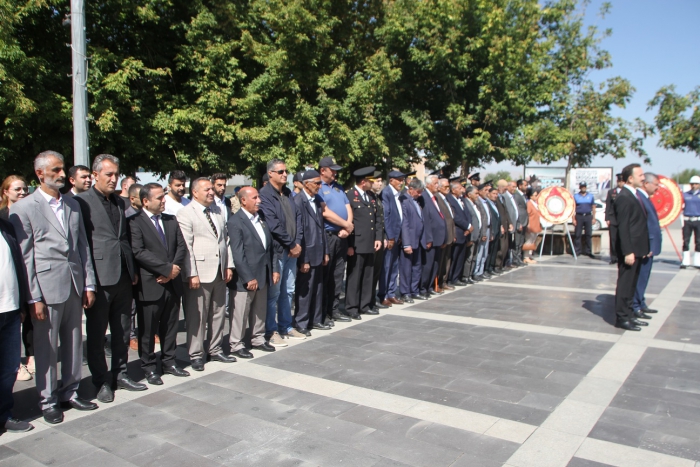 ALPARSLAN DİYARI-Cumhuriyet Meydanı'ndaki törende Atatürk Anıtı'na çelenklerin sunulmasının ardından saygı duruşunda bulunuldu, İstiklal Marşı okundu.