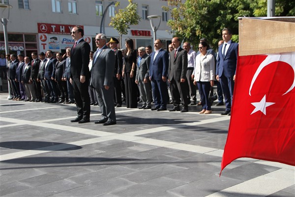Cumhuriyet Meydanı'nda düzenlenen tören, Atatürk Anıtı'na çelenk sunulması, saygı duruşunda bulunulması ve İstiklal Marşı'nın okunmasıyla başladı.