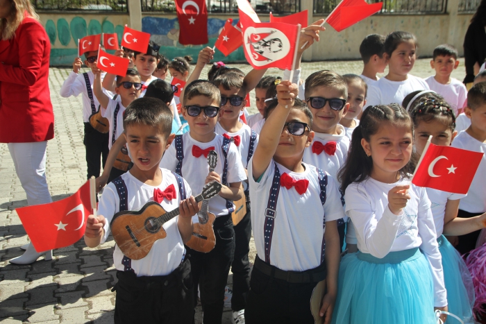 Cumhuriyet İlkokulu tarafından hazırlanan "23 Nisan Ulusal Egemenlik ve Çocuk Bayramı" okul bahçesinde gerçekleşen etkinlik renkli görüntülerin sahne oldu.