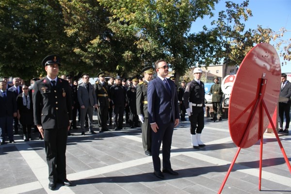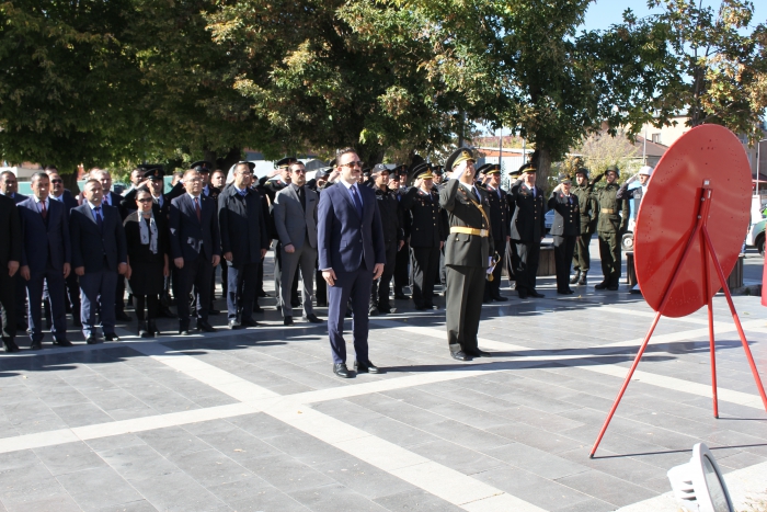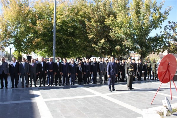 ALPARSLAN DİYARI- 29 Ekim Cumhuriyet Bayramı kutlamaları dolayısıyla Cumhuriyet Meydanı'ndaki Atatürk büstünde çelenk sunma töreni düzenlendi.