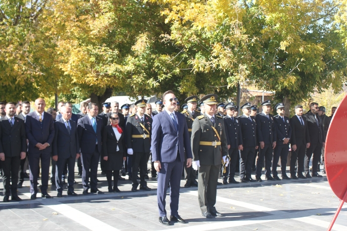 ALPARSLAN DİYARI- Atatürk Anıtı’na çelenk sunulmasıyla başlayan törende, saygı duruşu ve İstiklal Marşı okunarak Cumhuriyetin kurucusu Gazi Mustafa Kemal Atatürk ve silah arkadaşları anıldı.