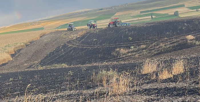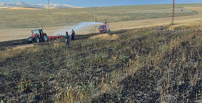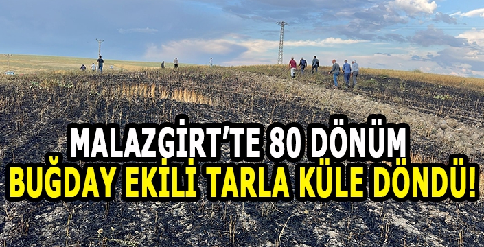 ALPARSLAN DİYARI-Muş’un Malazgirt ilçesi Kılıçı Köyü’nde elektrik direğinden çıktığı tahmin edilen yangın sonucunda Malazgirt Ziraat Odası Başkanı Tahsin Kılıç’a ait yaklaşık 70-80 dönüm buğday tarlası küle döndü.