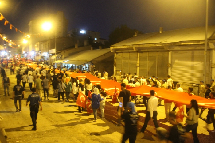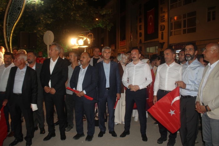 ALPARSLAN DİYARI- Vatandaşlar, Şehit Arslan Kulaksız’ın şehit edildiği caddede toplanarak Türk bayrağı ve meşaleler eşliğinde 15 Temmuz Meydanı önüne kadar yürüdü. Yürüyüşe katılanların coşkusu, Malazgirt’in tarihi zaferini bir kez daha yaşattı.