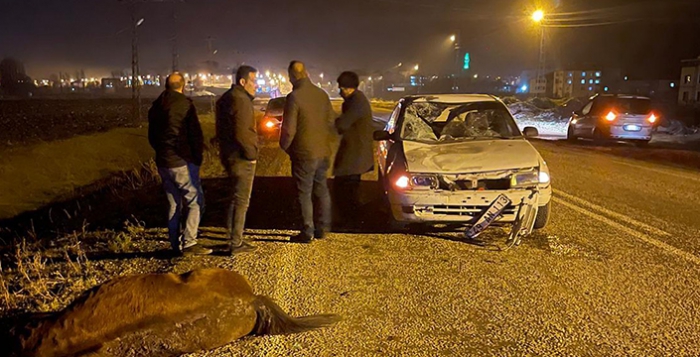 ALPARSLAN DİYARI- Malazgirt- Bulanık yolunda seyir halinde olan otomobil, bir anda yola atlayan ata çarptı. Araç sürücü şans eseri hafif şekilde yaralanırken, araçta ise büyük çapta hasar oluştu. At ise olay yerinde telef oldu.