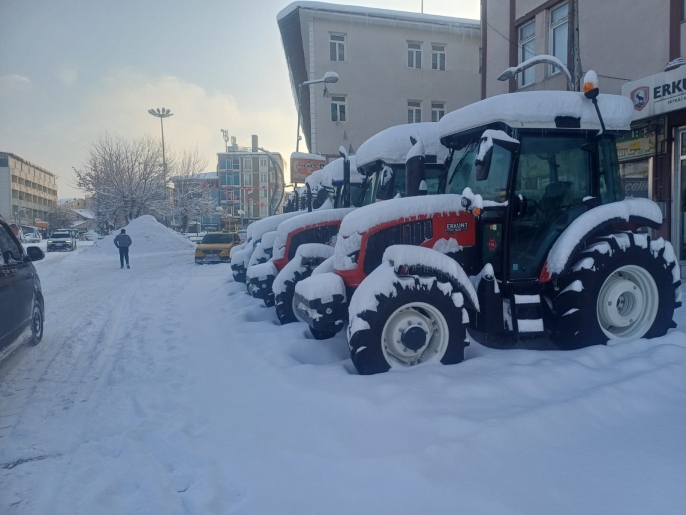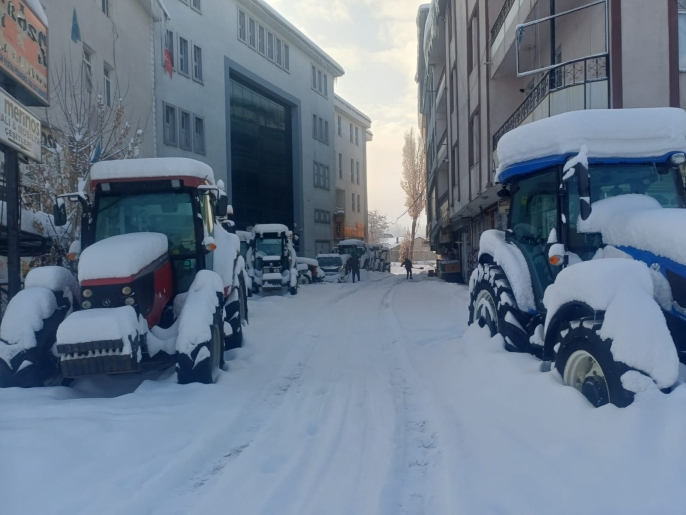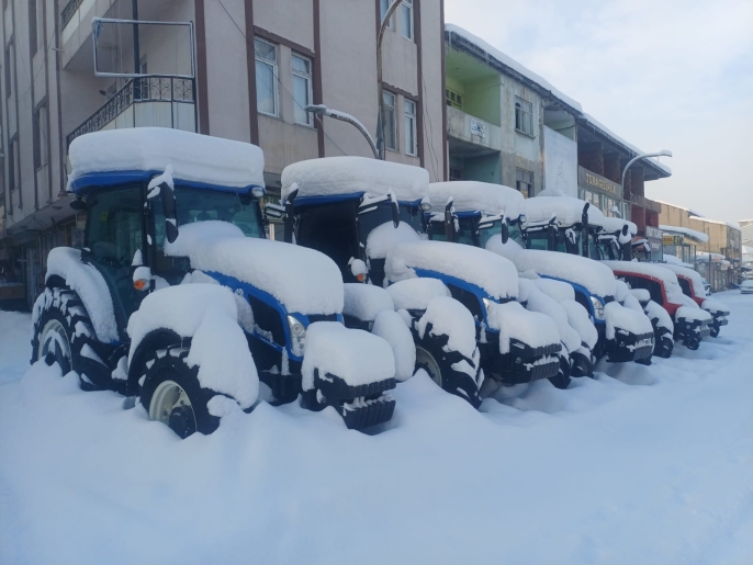 Karlar altında sessizce bekleyen traktörler, bahar aylarının gelişiyle birlikte yeniden tarlalara inecek ve Malazgirt ovasında emeğin, üretimin ve bereketin sesi yeniden yükselecek.
