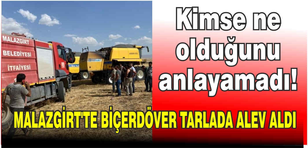 Edinilen bilgilere göre Malazgirt Karataş köyünde tarla hasadı sırasında biçerdöver buğday topladığı yerden birden alev aldı.