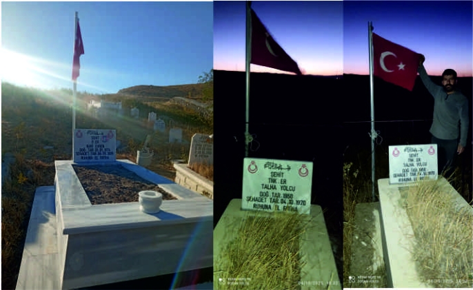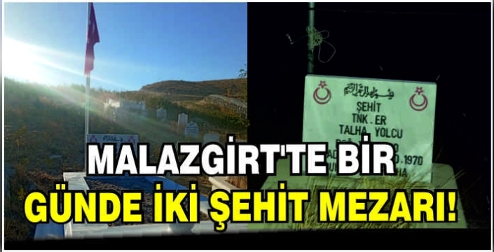 ALPARSLAN DİYARI- 1995 yılında Tunceli’de görev yaparken şehit düşen Piyade Er Nuri Evren ile, 1970 yılında Ankara Etimesgut’ta askerlik görevini yaparken göreve giderken geçirdiği trafik kazasında hayatını kaybeden ancak uzun yıllar boyunca resmi kayıtlarda şehit olarak yer almayan Talha Yolcu için Malazgirt’te aynı gün iki ayrı şehit mezarı yapıldı.